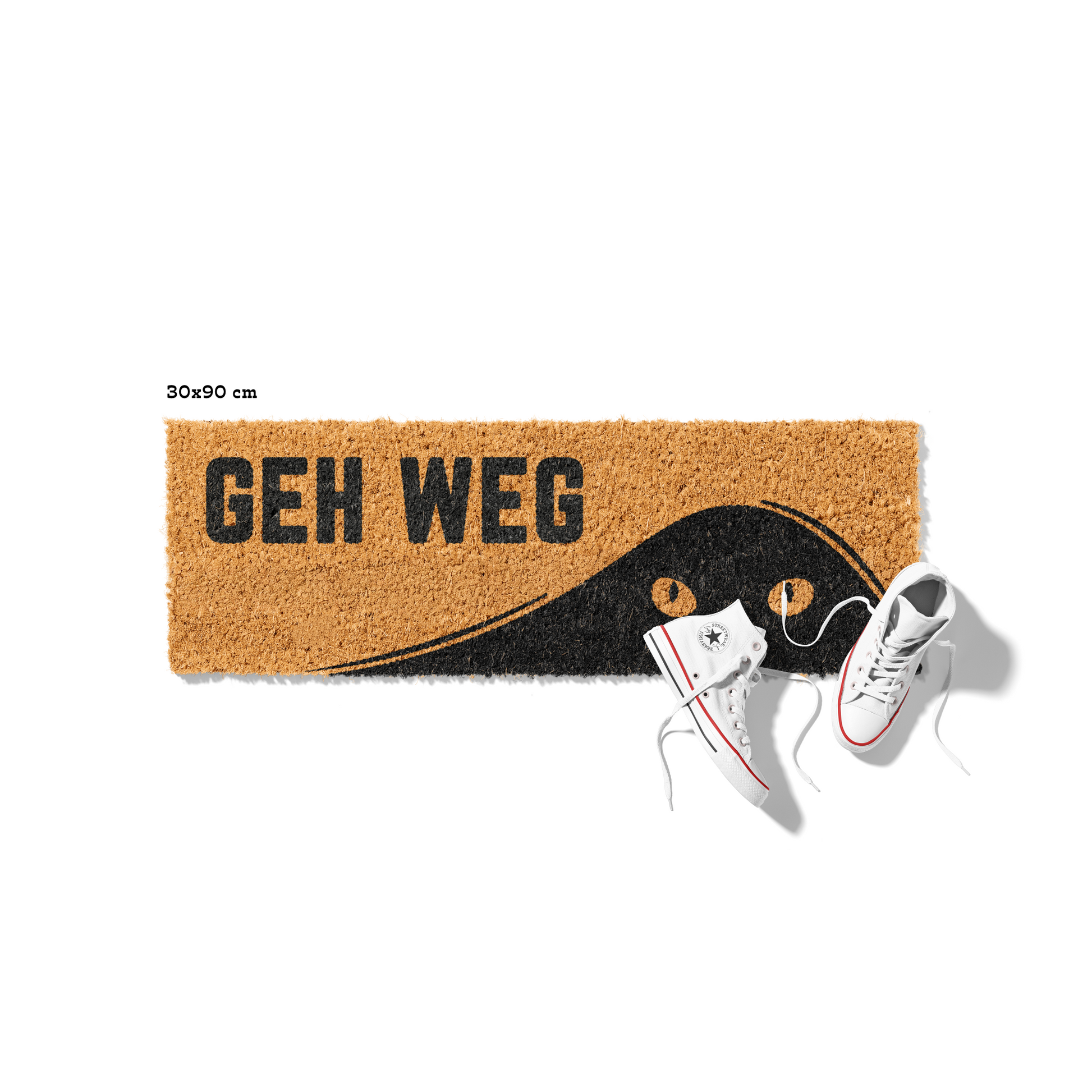 Fußmatte aus Kokos mit lustigem Spruch – Katzenmotiv „Geh weg"