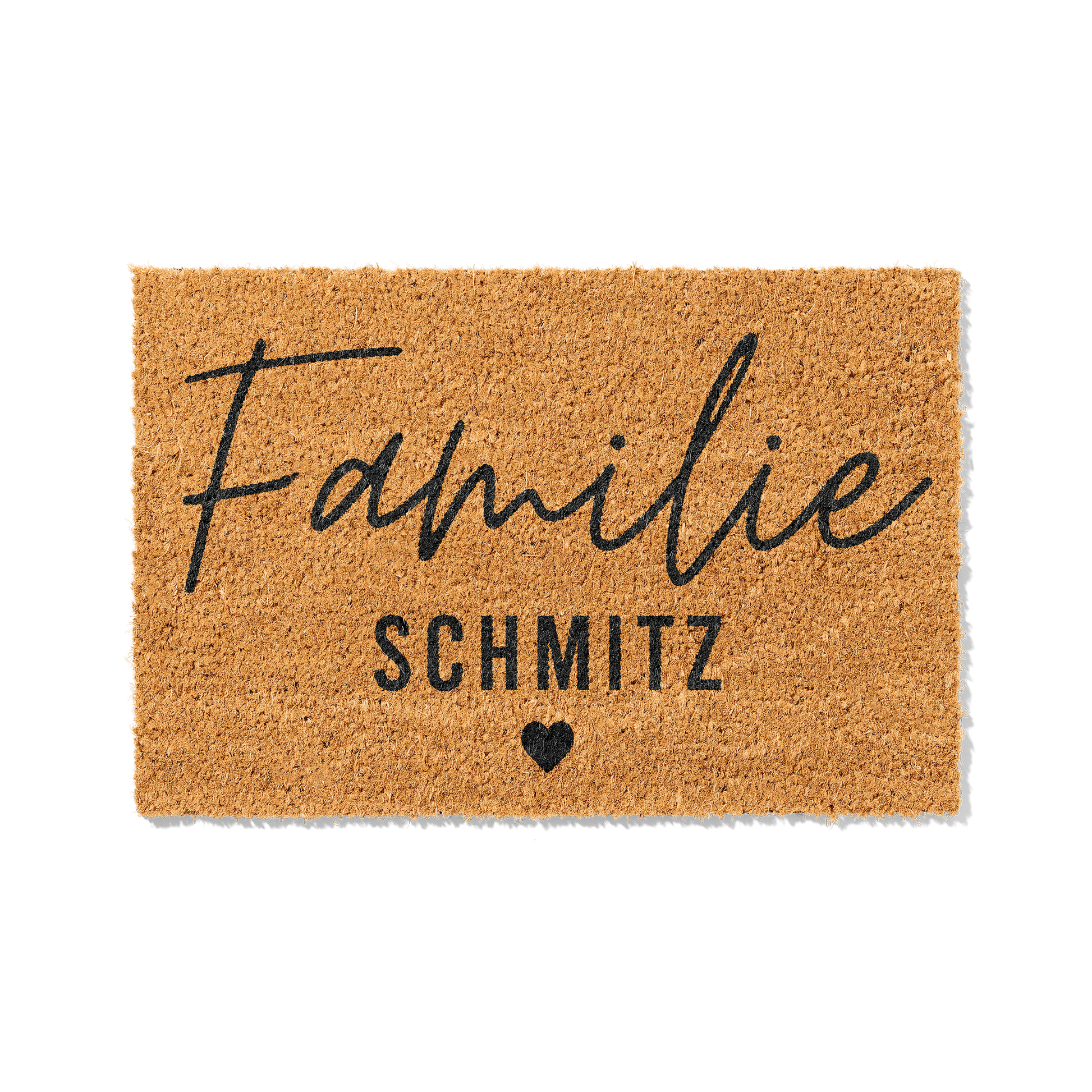Fußmatte aus Kokos personalisierbar – Familienname im Handlettering-Stil mit Herz