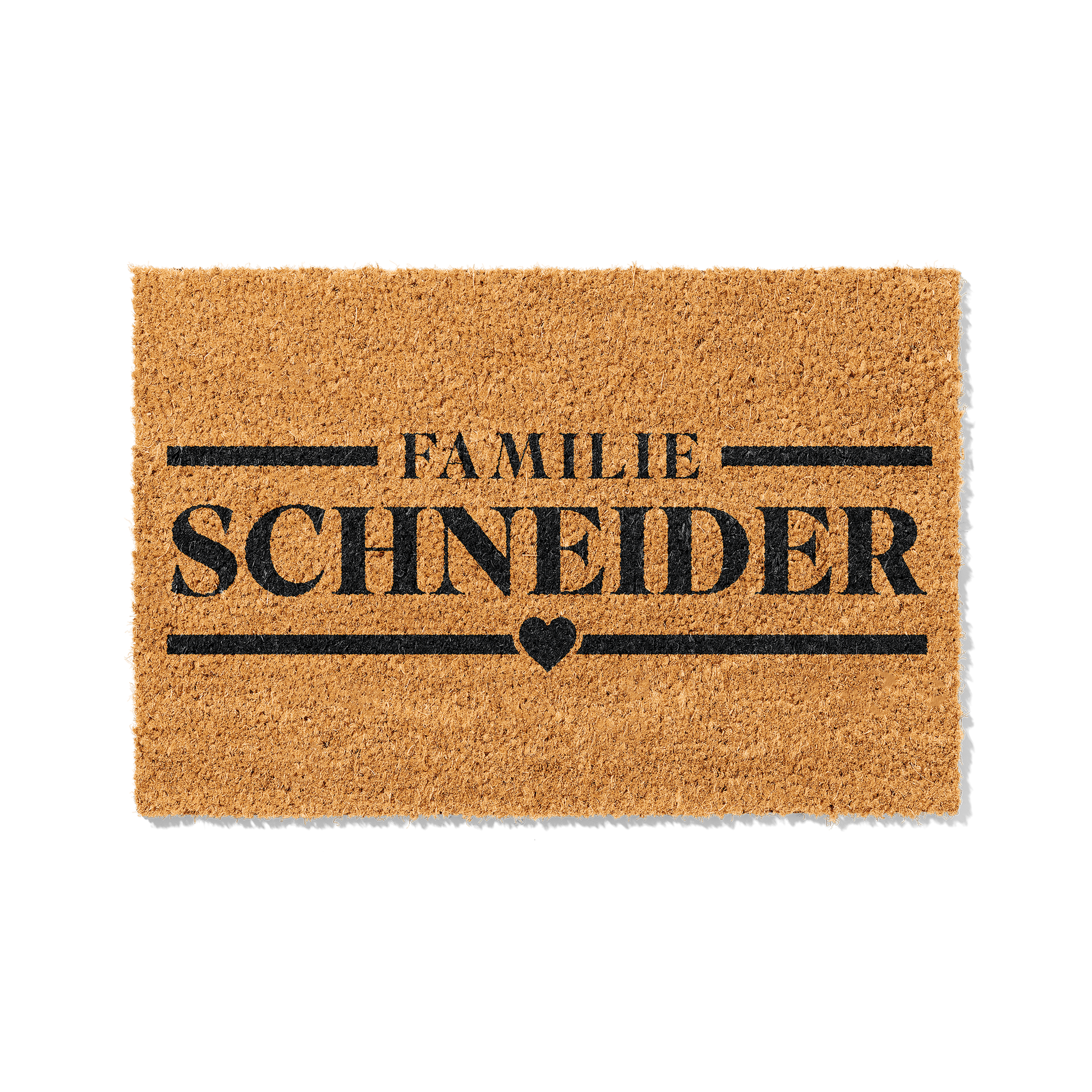 - Individuelle Personalisierung: Dein Wunsch-Familienname wird präzise und langlebig auf die hochwertige Kokosfaser gedruckt.
