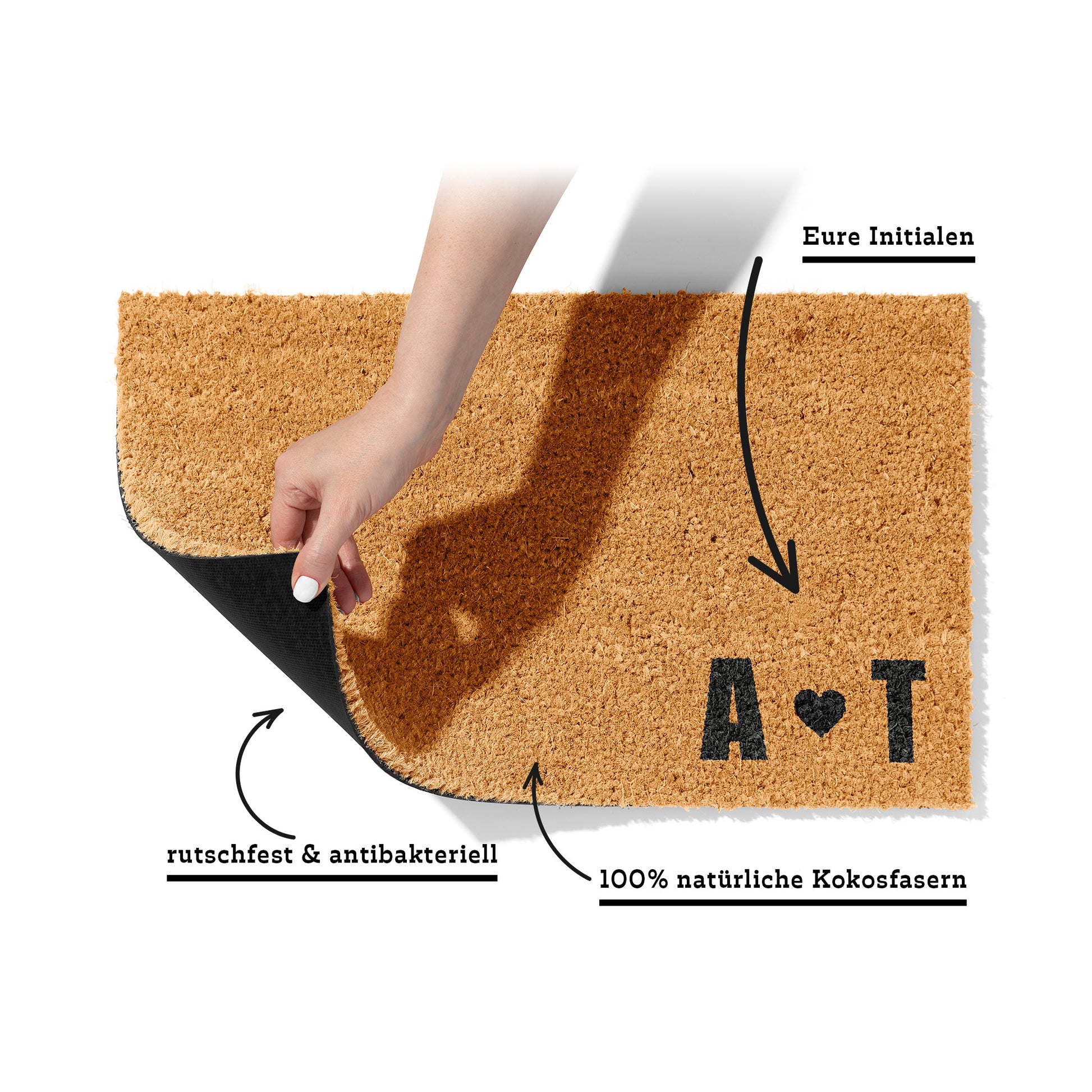 Personalisierte Kokos-Türmatte für Paare – Initialen-Design mit Herz