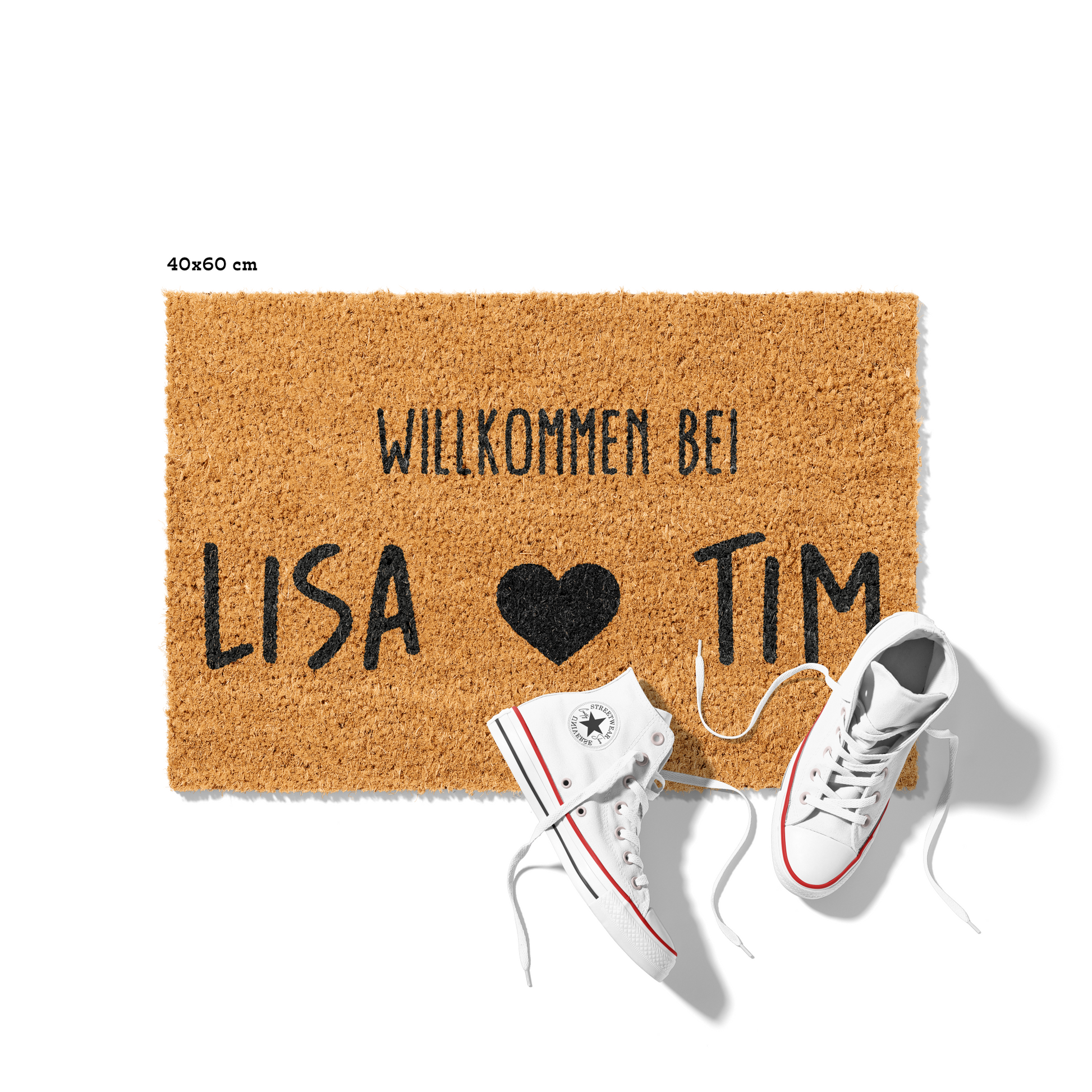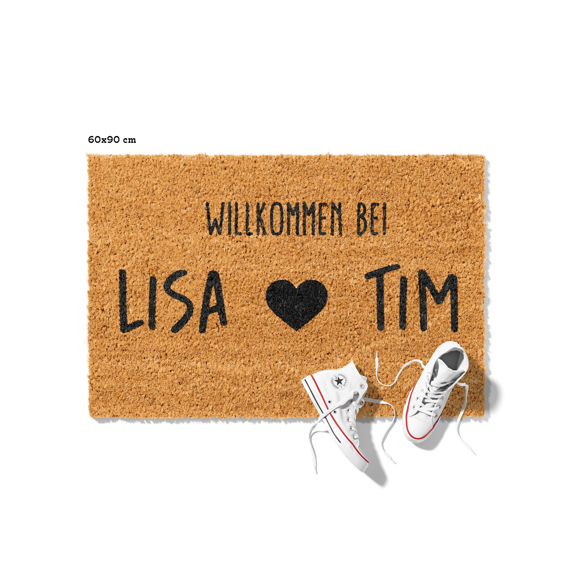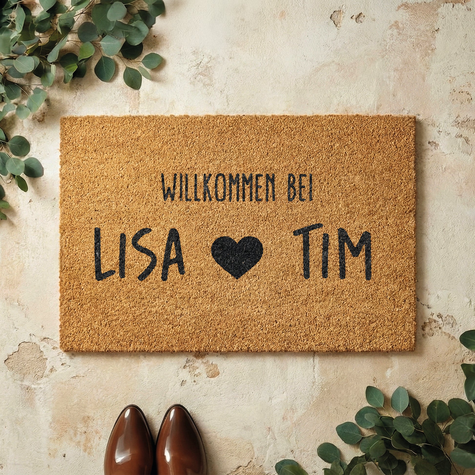 Fußmatte aus Kokos personalisierbar – Pärchennamen Willkommen mit Herz