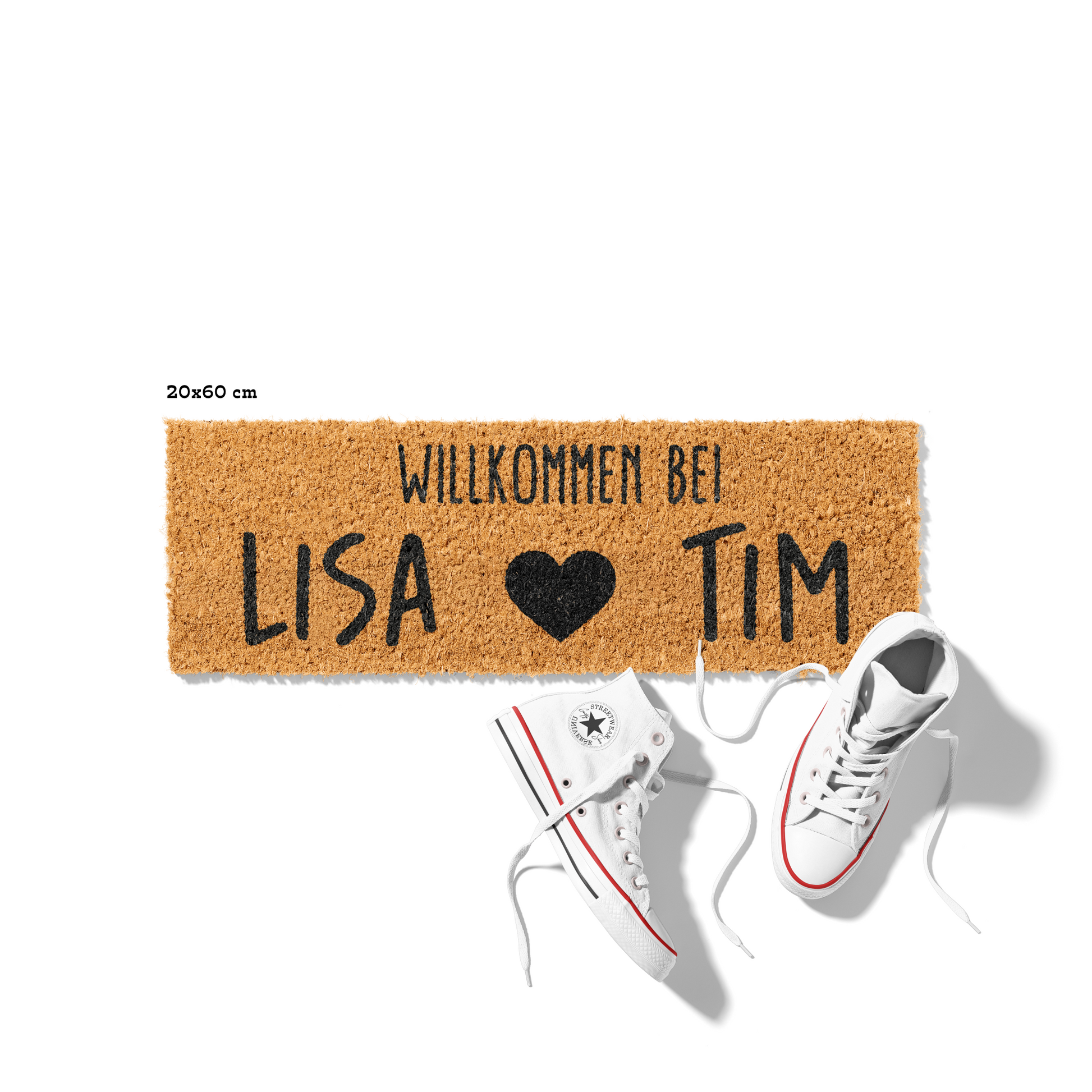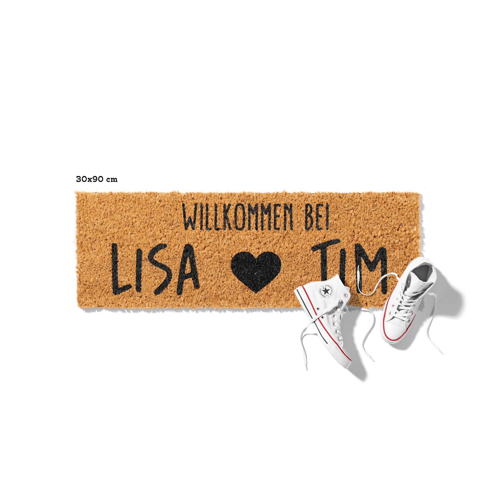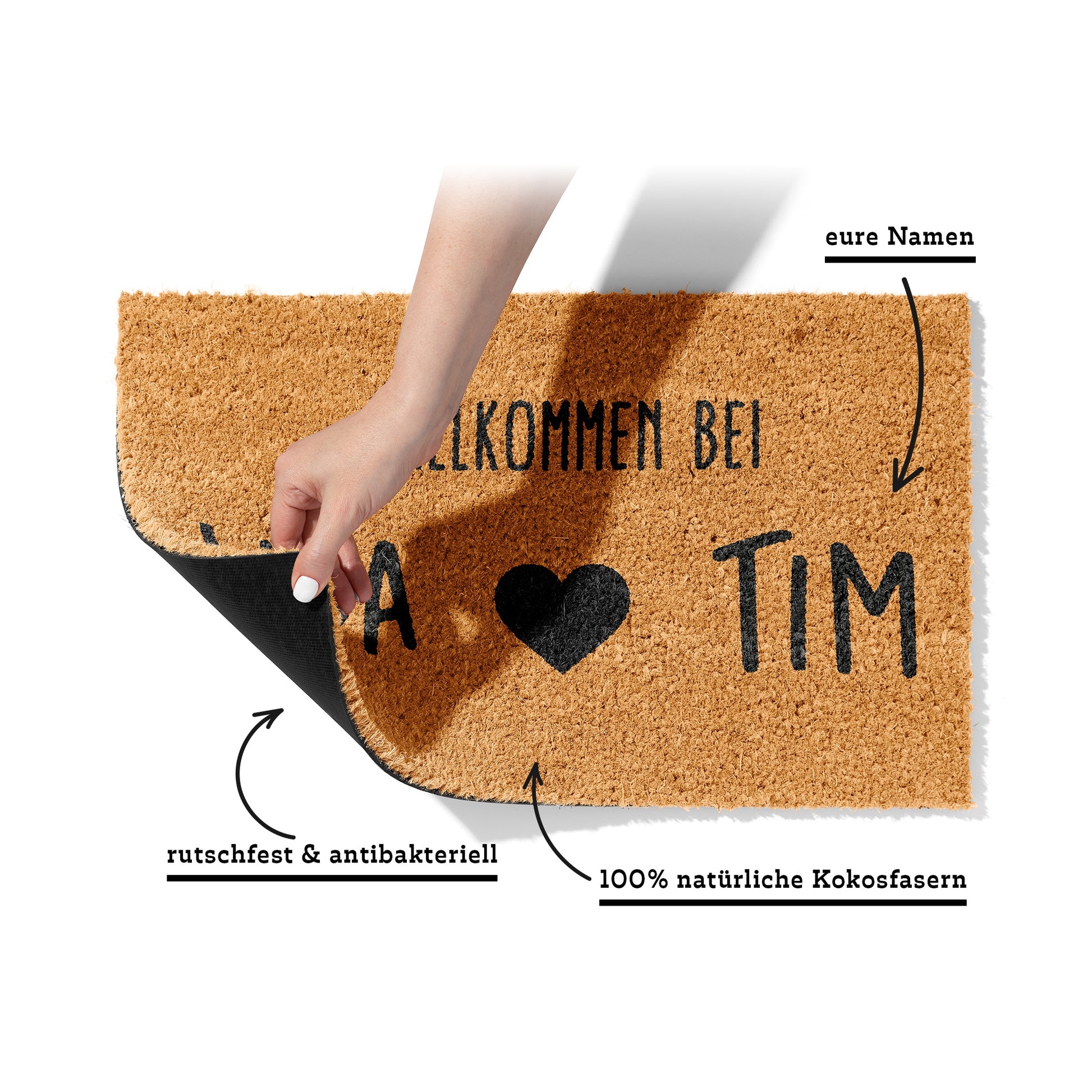 Fußmatte aus Kokos personalisierbar – Pärchennamen Willkommen mit Herz